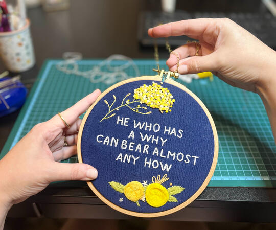 Welcome to Sideways Studio, where creative work doesn’t always follow a straight line. I make embroidered pieces, original paintings, mixed-media art and more, all rooted in story, texture and language.Whether you're here to order something meaningful, explore what I’ve made, or follow along as this studio grows, I’m so glad you’re here.